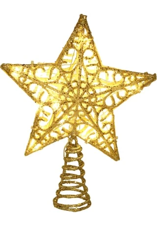Eine Baumspitze ist das I-Tüpfelchen auf jedem Weihnachtsbaum. Diese hier wird durch kleine LEDs beleuchtet, die den beigefügten Glitterbesatz zum Funkeln bringen. Für den Innenbereich.