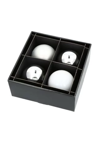 zwei der Kugeln sind dezent mattiert, die zwei anderen glänzen auf elegante Art und Weise
