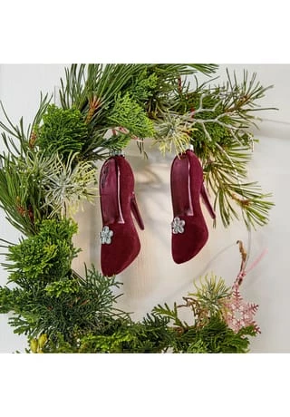 Reizende Schühchen mit Deko-Perlen. Sehr romantisch und verspielt. Gläsernes Design mit edlem Samtbezug. Einfach zuckersüß, diese High Heels im Miniaturformat. Sie sind mit weichem Nylon-Samt bezogen und sehr detailreich gestaltet. Man kann sich richtig vorstellen, wie eine feine Dame hineinschlüpft und auf einem Winterball darin tanzt. Wer einen eleganten Festschmuck der etwas anderen Art sucht, wird hier fündig. Bringen Sie einen individuellen Hauch Nostalgie an Ihre Tanne und freuen Sie sich auf ein schickes Accessoire, das auch Girlanden und Winterzweigen sehr gut steht. Mode-Liebhaber könnten sich sogar das ganze Jahr darüber erfreuen.