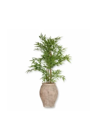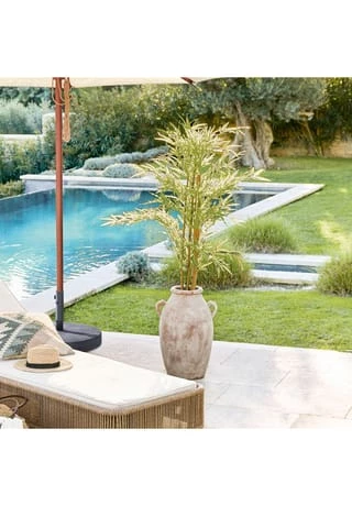 Sehr naturnaher, detailiert gestalteter Bambus-Baum. Für immer frisch und grün. Pflegeleichte, langlebige Dekoration. Dank der Verstärkung mit Eisendraht sind die Bambusstangen ein wenig flexibel, was für eine noch natürlichere Optik sorgt. Ein dezenter Übertopf ist schon dabei. Sie können die schlanke Deko-Pflanze aber natürlich auch nach Belieben umtopfen. Freuen Sie sich auf einen Hauch Exotik auf dem Balkon, der Veranda oder in Innenräumen. Dieser hübsche Bambus trocknet und welkt garantiert nie, sodass Sie in jeder Saison und viele Jahre daran Freude haben werden. Er schmeichelt wirklich jedem Ambiente.