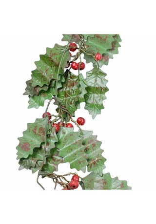 Aufwendige Handarbeit. Von Hand ausgeschnitten, geschliffen und bemalt. Sehr langlebiges Design aus Eisen und Beeren aus Mangoholz. Holen Sie sich diese sehr naturnahe und niemals welkende Deko-Girlande nach Hause und setzen Sie einen hübschen, winterlichen Akzent. Die Beeren und Blätter sind ganz fein gestaltet, sodass ein sehr charmanter Effekt Ihre Räume ziert. An einer Kaminkonsole, einem Dachbalken oder dem Fenster lässt sich hiermit eine stilsichere Dekoration zaubern, welche sehr gut zum Landhaus-Stil passt. In der Küche, am Fenster im Wohnzimmer oder auch an der Tür platziert ist das freundliche Design jederzeit ein schmückendes Detail für Ihr Zuhause.