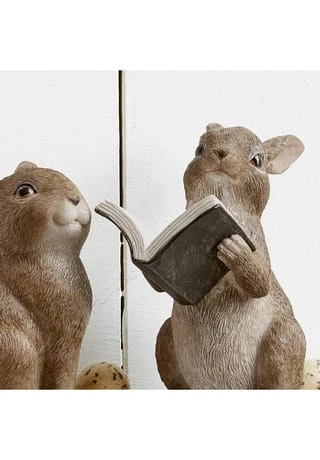 Sehr süße, nostalgische Optik. Zwei Designs im Set. Liebevoll handbemaltes Polyresin. Diese beiden kleinen Häschen sind eine sehr geschmackvolle Osterdekoration. Sie lassen sich bestens mit Eiern, Blüten und anderem Osterschmuck kombinieren und zaubern das Flair früherer Zeiten in Ihr Heim. Schwelgen wir doch in Erinnerungen an Tage, wo alles einfacher erschien und träumen wir uns zu den Osterfesten der Kindheit zurück – eine schöne Idee. Das niedliche Duo ist sehr freundlich gestaltet und verschönert die Festtage jedes Jahr aufs Neue.