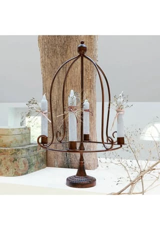 Französischer Look mit rostbraunem Eisen. Für Kerzen und als Deko geeignet. Schöne Gestaltung des Fußes mit unterschiedlichen Strukturen. Liebhaber des französischen Landhausstils mit einem Faible für historische Looks werden diesen Kerzenhalter mit seinem bezaubernden Design zu schätzen wissen. Die stilvolle Optik begeistert und lädt zum Träumen ein bei entspannenden Stunden im stimmungsvollen Kerzenlicht. Als Material ist rostbrauner Stahl im Einsatz, der Fuß hat eine feine Noppen-Struktur. Ein wunderbares Schmuckstück, das wir ohne Kerzen zu Ihnen liefern, sodass Sie selbst kreativ werden können.