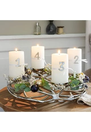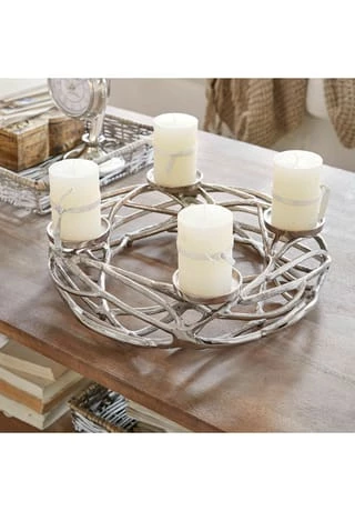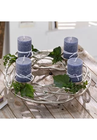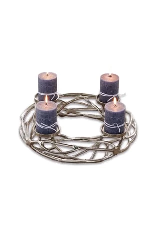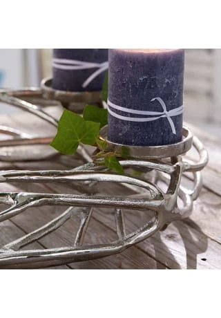 Für vier Stumpenkerzen oder Teelichter. Aus Aluguss mit einzigartig glänzender Oberfläche. Mit weiteren Accessoires dekorierbar. Dieser Kerzenkranz ist äußerst kunstvoll und detailliert gestaltet, um jeden Raum mit seiner Schönheit zu erleuchten. Als exquisites Accessoire ist er ein perfekter Blickfang für Ihr Zuhause und zwar unabhängig von der Jahreszeit. Der hochwertige Aluguss macht den Kranz sehr langlebig und der feine Glanz der Oberfläche unterstreicht seine Eleganz. Sein unverwechselbares Design harmoniert mit unterschiedlichsten Wohnkonzepten.