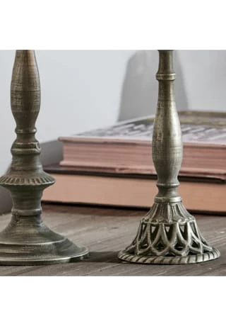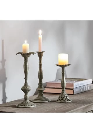 Historische Anmutung mit beeindruckenden Mustern. Gebürsteter Stahl mit mattem Finish. Eleganter, französischer Stil. Diese drei Schmuckstücke könnten aus einem verwunschenen Schloss stammen. Sie haben antikes, royales Flair und sind ein echtes Highlight zum Shabby-Chic. Alle drei sind kunstvoll und aufwendig verziert. Hiermit gelingt Ihnen eine sehr stimmungsvolle Dekoration mit besonderer Eleganz. Als Trio oder je einzeln platziert versprühen die drei unterschiedlichen Designs ihren Charme. Freuen Sie sich auf heimeliges Kerzenlicht und einen anmutigen Anblick, der an frühere Zeiten erinnert.