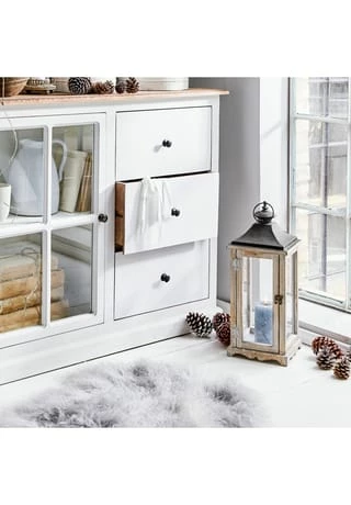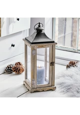 Echtes Tannenholz mit natürlich schöner Maserung. Das Dach ist aus Eisen gefertigt. Hübscher Verschluss in Form eines Hakens an der Fronttür. Ein Abendessen mit Ihrer Familie oder mit Freunden, ein ruhiger Leseabend, eine Stunde in stimmungsvoller Atmosphäre musizieren oder Musik genießen – für die schönen Momente des Lebens ist diese Laterne wie geschaffen. Als Lichtspender und Dekoobjekt zugleich macht Sie die beste Figur. Der hübsche Hakenverschluss, das schicke Eisendach und die großen Glasflächen – alles passt zusammen und in Ihr schönes Zuhause. Ob Teelicht oder Stumpenkerze: Bei der Wahl des Leuchtmittels haben Sie freie Wahl, da es nicht im Lieferumfang enthalten ist. Freuen Sie sich auf ein wunderbares Wohlfühlambiente.