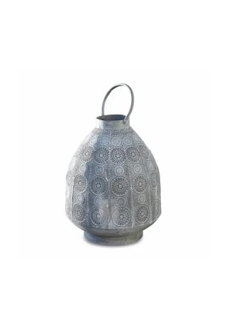 Stahl mit kunstvoll gestanztem Muster und Antik-Finish versehen. Zauberhafte Lichtreflexe und gemütlicher Kerzenschein. Attraktive Größe und verstellbarer Henkel. Zum Stellen oder Hängen geeignet. Träumen Sie sich mit diesem edlen Design in 1001 Nacht. Ein geschmackvoller Akzent, der das exotische Flair des Orients auf Ihren Balkon oder in dem Garten zaubert. Hiermit lassen sich laue Nächte gleich noch mehr genießen. Schauen Sie in die Sterne oder führen Sie nächtliche Gespräche – hiermit wird es besonders romantisch. Und auch in Innenräumen adeln Sie hiermit jedes Ambiente, ob Shabby-Chic oder Landhaus. Schaffen Sie mit dem feinen Design etwa im Wohn- oder Schlafzimmer eine magische Atmosphäre.