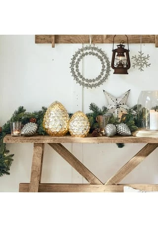 Hübsche Deko in Tannenzapfenoptik. Edles Bauernsilber-Finish. Zum Aufhängen an Zweigen oder am Christbaum. Ob an den grünen Zweigen Ihres Christbaums, am Adventskranz oder an Kiefernzweigen auf Ihrer weihnachtlichen Festtafel: Die hübschen Anhänger in Tannenzapfenoptik machen durch ihr bezauberndes Bauernsilber-Finish Weihnachten noch stilvoller und schöner. Lassen Sie bei der kreativen Gestaltung Ihres Adventambientes Ihren Ideen freien Lauf – auf die wundervollen Zapfen werden Sie dabei sicher nie mehr verzichten wollen, wenn Sie Ihre Räume mit einer weihnachtlichen Atmosphäre erfüllen.