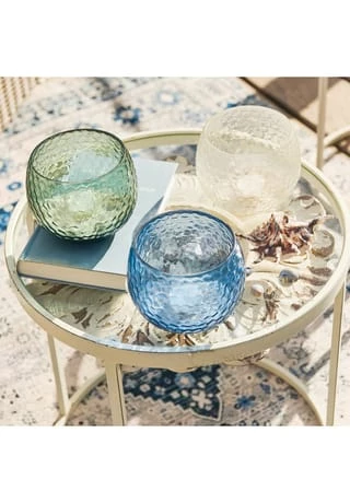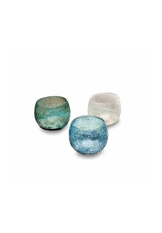 Glas mit reizvollem Waben-Muster. Feine, mundgeblasene Schmuckstücke. Harmonisches Set. Dieses elegante Trio ist bereits perfekt kombiniert und macht zusammen wie auch als Einzelstücke platziert eine sehr gute Figur. Mit Teelichtern bestückt entsteht eine romantische Atmosphäre für drinnen wie draußen. Es lassen sich auch Blüten und kleine Zweige in den handlichen Windlichtern arrangieren, sodass Sie immer wieder neue und ganz natürliche Deko-Akzente setzen können. Die formschönen Stücke schmeicheln vielen Interieurs und sind in jeder Jahreszeit eine Freude. Ihre erfrischende Farbgebung ist sehr ansprechend. Sie könnten alternativ auch kleine Dinge darin verwahren.