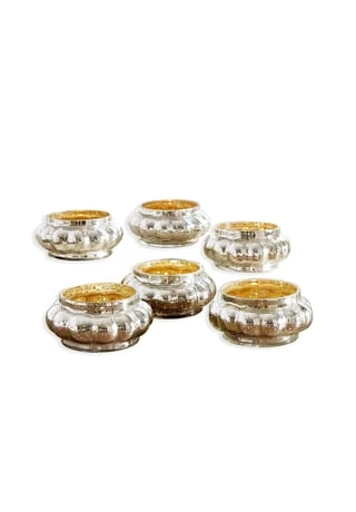 Mit glänzendem Bauernsilber-Finish. Passend für ein großes Teelicht. Nutzen Sie die zauberhaften Teelichthalter als stilvollen Tafelschmuck oder arrangieren Sie ein paar von Ihnen auf dem Kaminsims oder einer Kommode. Die bauchige Form im antiken Look eignet sich für Dekorationen zu jeder Jahreszeit – zu Weihnachten und Silvester entfalten sie dann innerhalb der festlichen Deko-Ideen ihren vollen Charme.