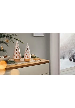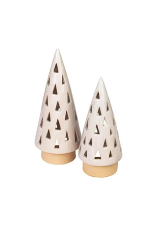 Zwei Teelichthalter aus Keramik im Set. Die stilisierten Tannenbäume sind auch unbeleuchtet schon schöne Dekoobjekte – jeweils mit einem Teelicht beleuchtet kommen die Tannen aber besonders gut zur Geltung!