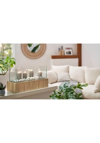 Modernes Windlicht aus recyceltem Holz im Natur-Look.